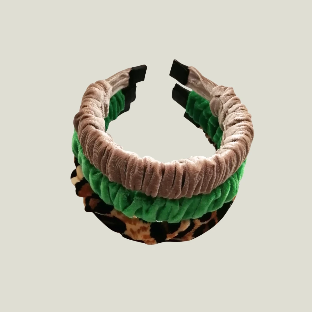 Cintillo fruncido al estilo princesa recogido, creando pliegues que aporta volumen y distinción.